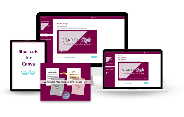 Deswegen ist Start & Style entstanden. Ein Kurs, der dir Orientierung in Canva gibt. Ein Kurs der dir zeigt, wie du direkt loslegst und deine ersten Posts gestaltest, passend zu dir und deinem Business. Damit aus deinem “Ich check das nie.” ein ”Yeah, ich pack das!” wird.