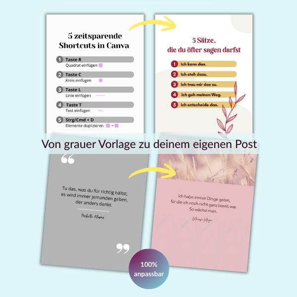 Alle Vorlagen sind bewusst super einfach und schlicht gehalten, damit du sie super leicht anpassen kannst und direkt in deinen eigenen Style bringst.